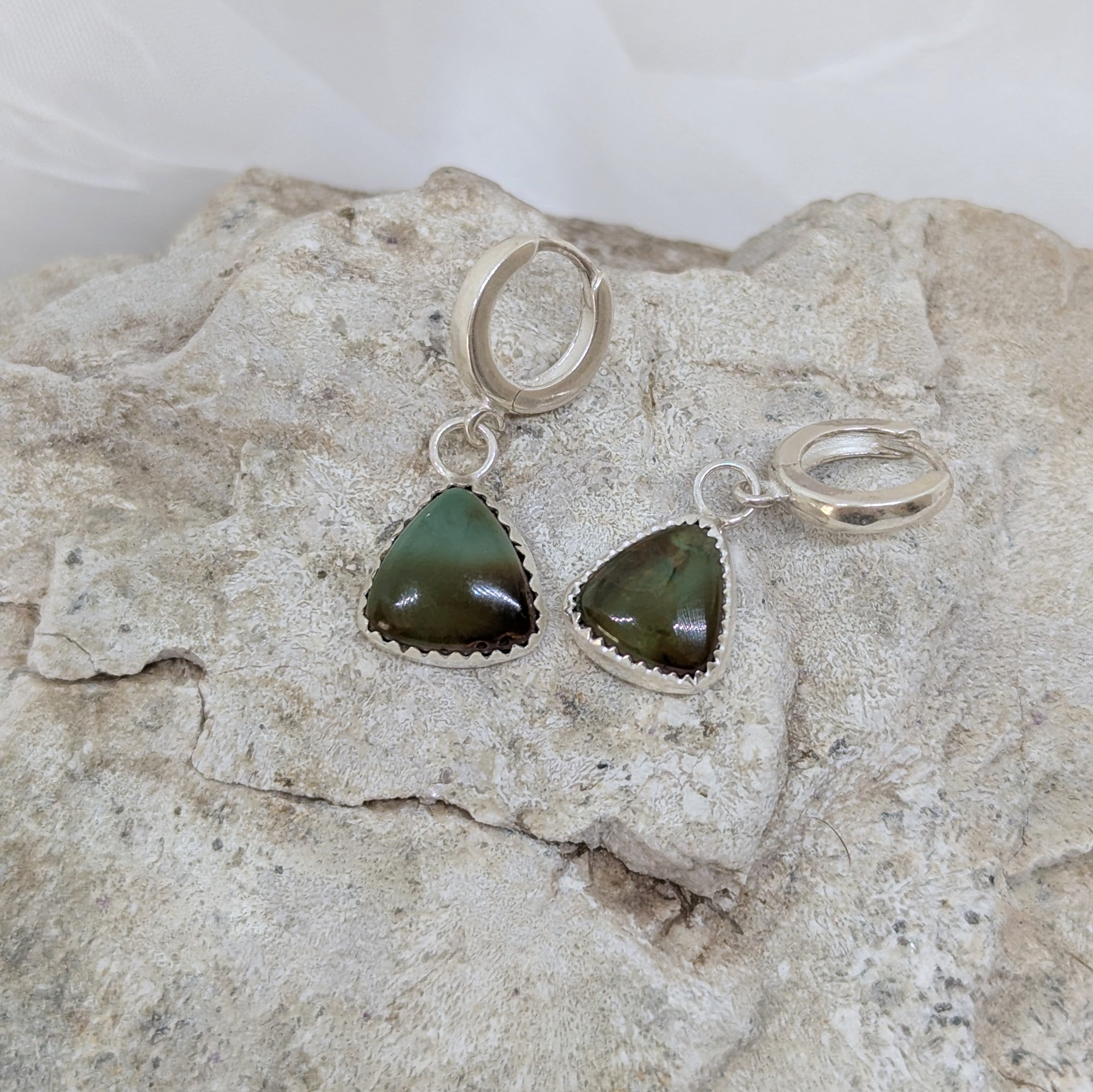 Add a pop of color to your everyday look with these handmade dangling turquoise earrings. Made with sterling silver and two beautiful turquoise gems, they'll give you an earthy vibe while adding a touch of fun to your style. Put your best foot (or ear) forward with these playful earrings.