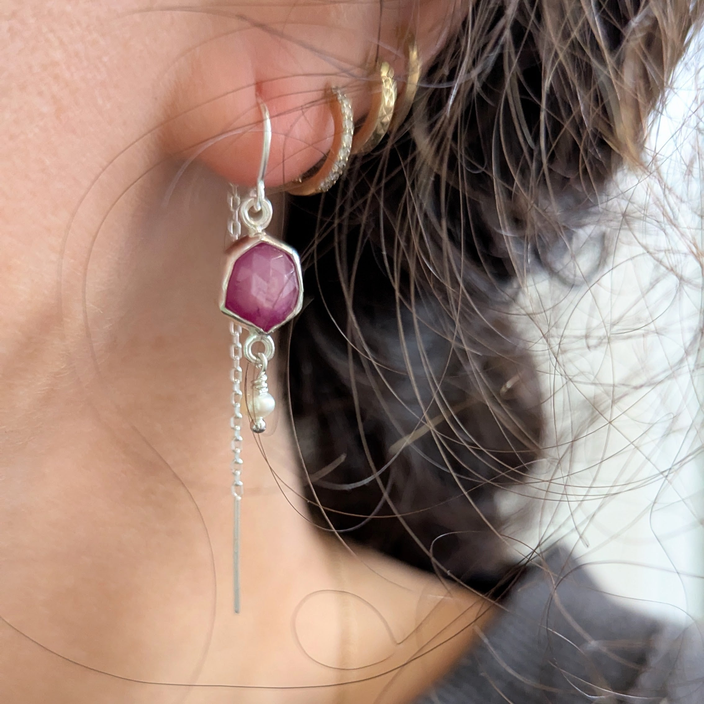 Delicate pink sapphires meet lustrous pearls in these charming Lana earrings. Tiny gemstones and pearls dangle gracefully from a delicate chain, creating movement and light with every turn of your head. Perfect for adding a touch of whimsy to everyday wear or layering with other pieces for a curated look. A playful yet refined choice for jewelry lovers who appreciate understated elegance with personality.