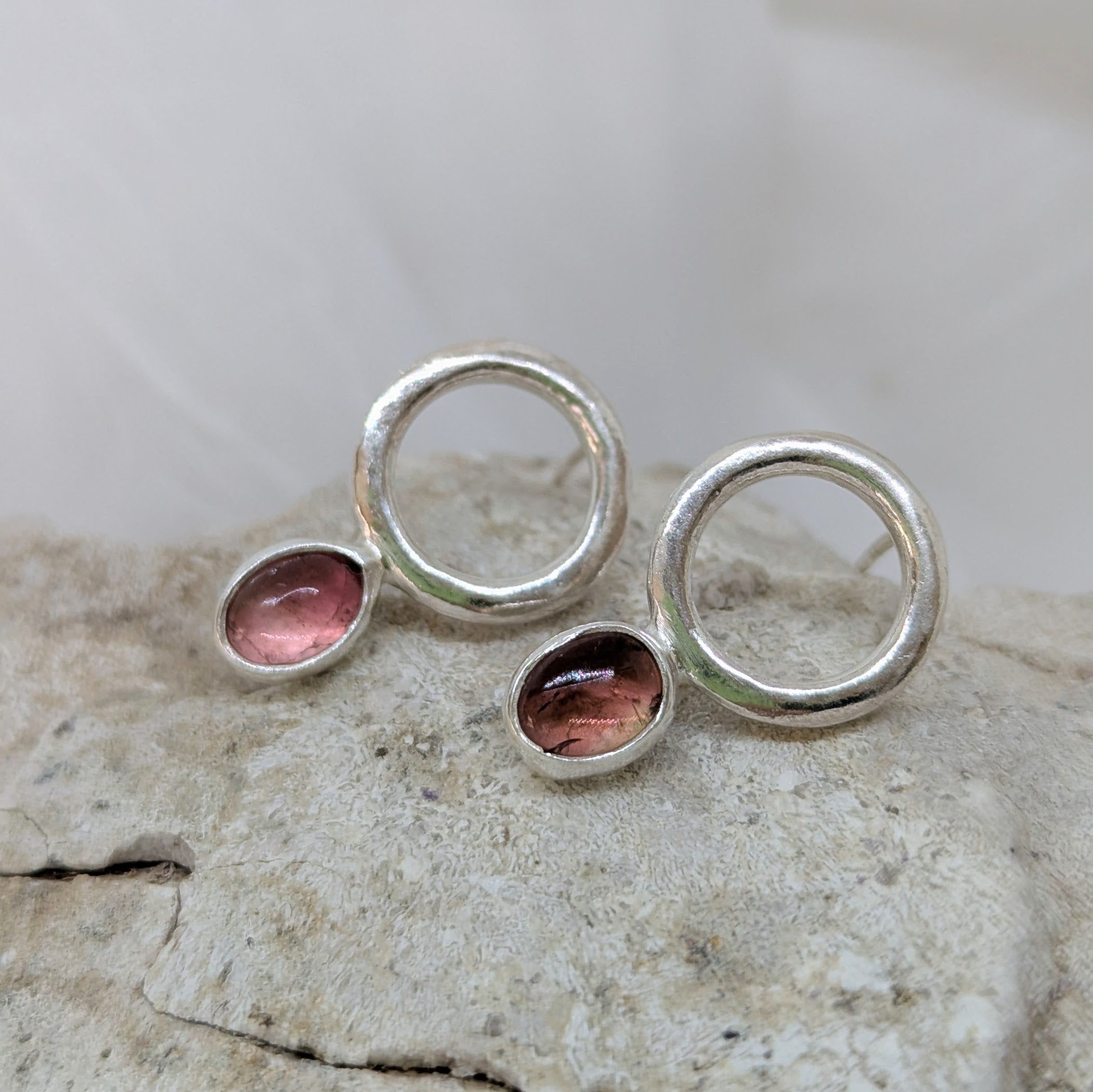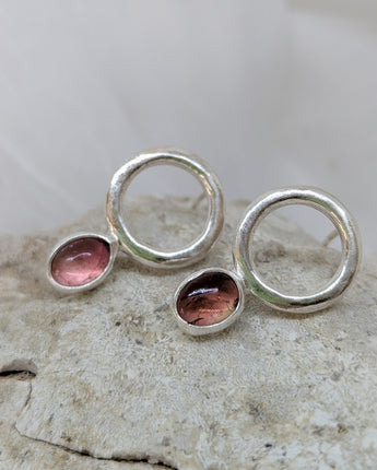Meet Maya—earrings that blend sophistication with carefree style. A polished silver circle anchors two luminous pink tourmalines that dangle with graceful movement, creating an effortlessly chic silhouette. The circular design evokes a calm, grounding energy while the soft pink stones add a touch of playful romance. Whether you're dressing up or keeping it casual, these earrings deliver understated elegance with just the right amount of fun.