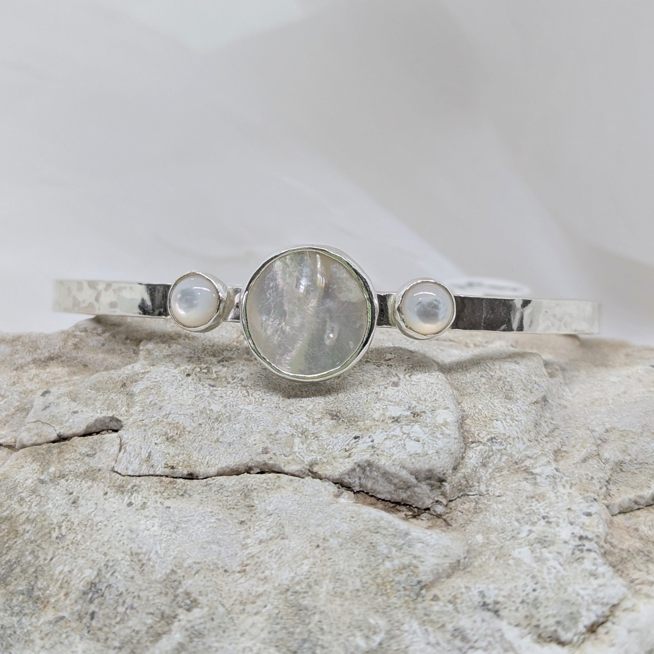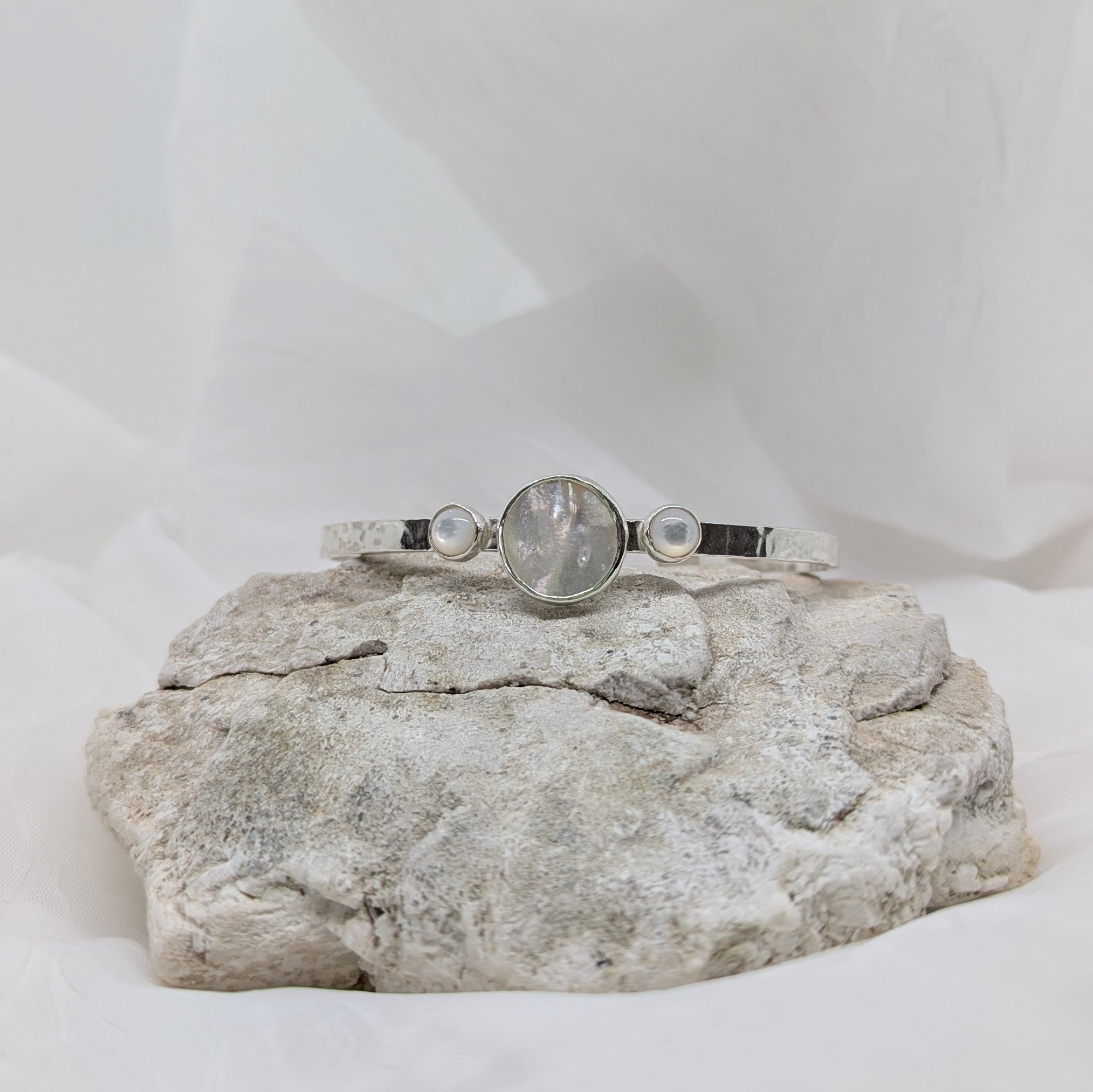 Meet your new favorite accessory—a silver cuff adorned with three luminous pearls that strike the perfect balance between understated and unforgettable. Classic lines, modern sensibility, and just enough sparkle to catch the light. Layer it, stack it, or let it shine solo. Timeless elegance that actually feels fun to wear.