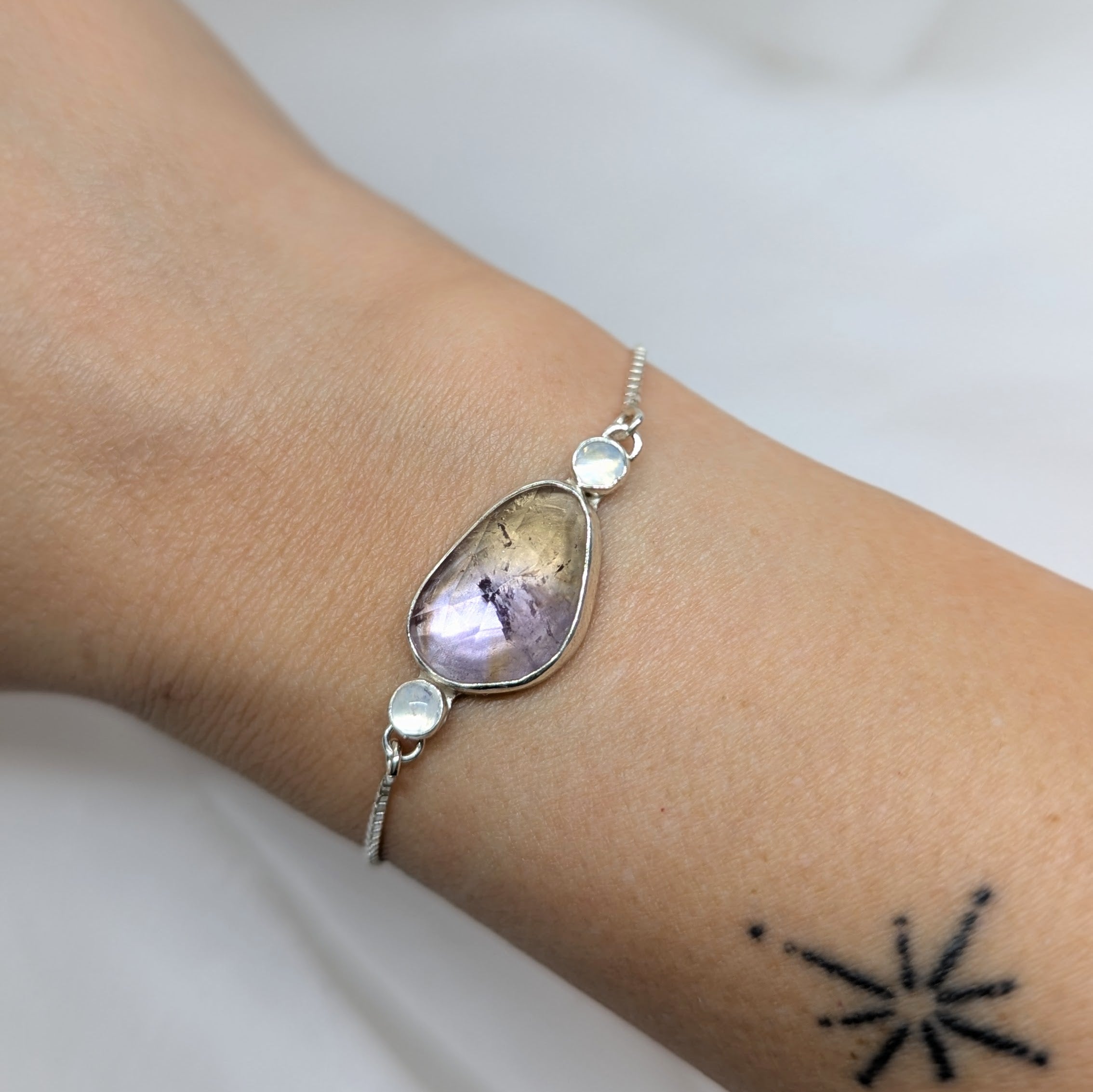 Meet the bracelet that refuses to play it safe. This bolo design showcases ametrine's mesmerizing purple-and-orange palette—a natural gemstone combo that's genuinely one-of-a-kind. Delicate enough to wear solo or stack with favorites, yet bold enough to turn heads. Timeless styling means it'll stay in rotation for years, proving that the best accessories are the ones that spark joy every single time you put them on.