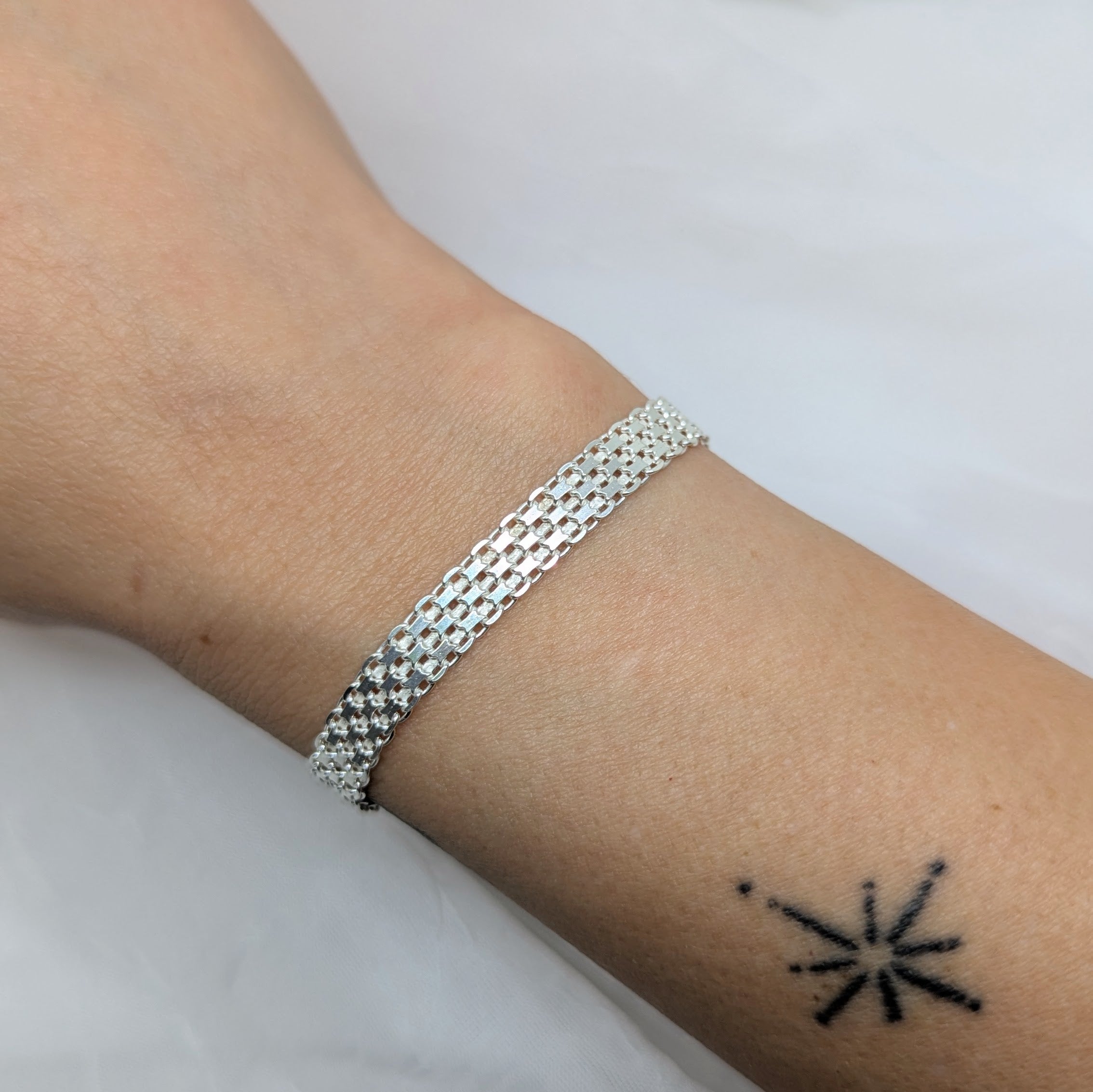Catch the light and turn heads with this dazzling disco bracelet. Layer it with your favorite pieces for extra sparkle, or let it shine solo as your statement accessory. Perfect for adding that touch of elegant fun to any look—whether you're dressing up for a night out or elevating your everyday style.