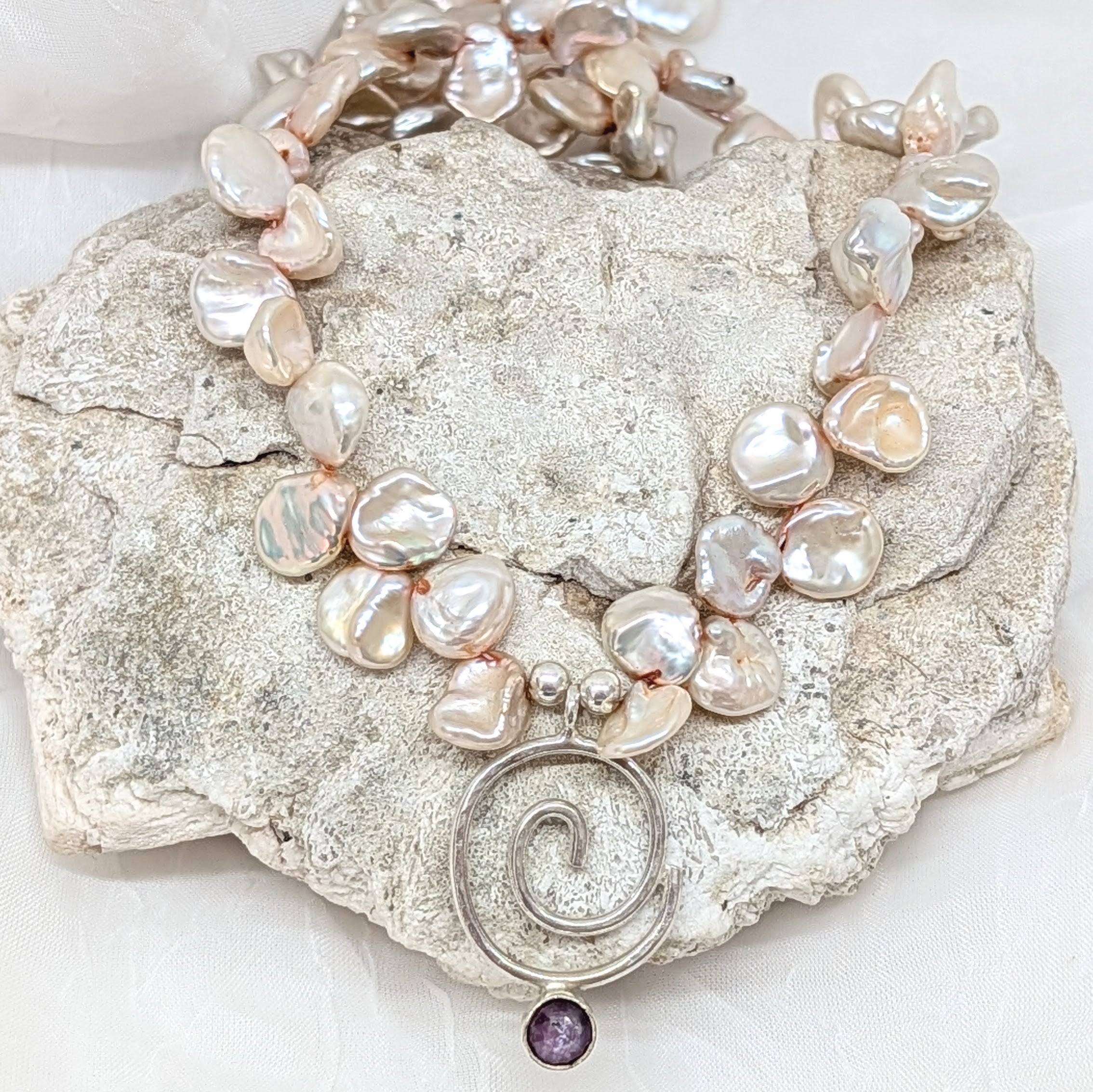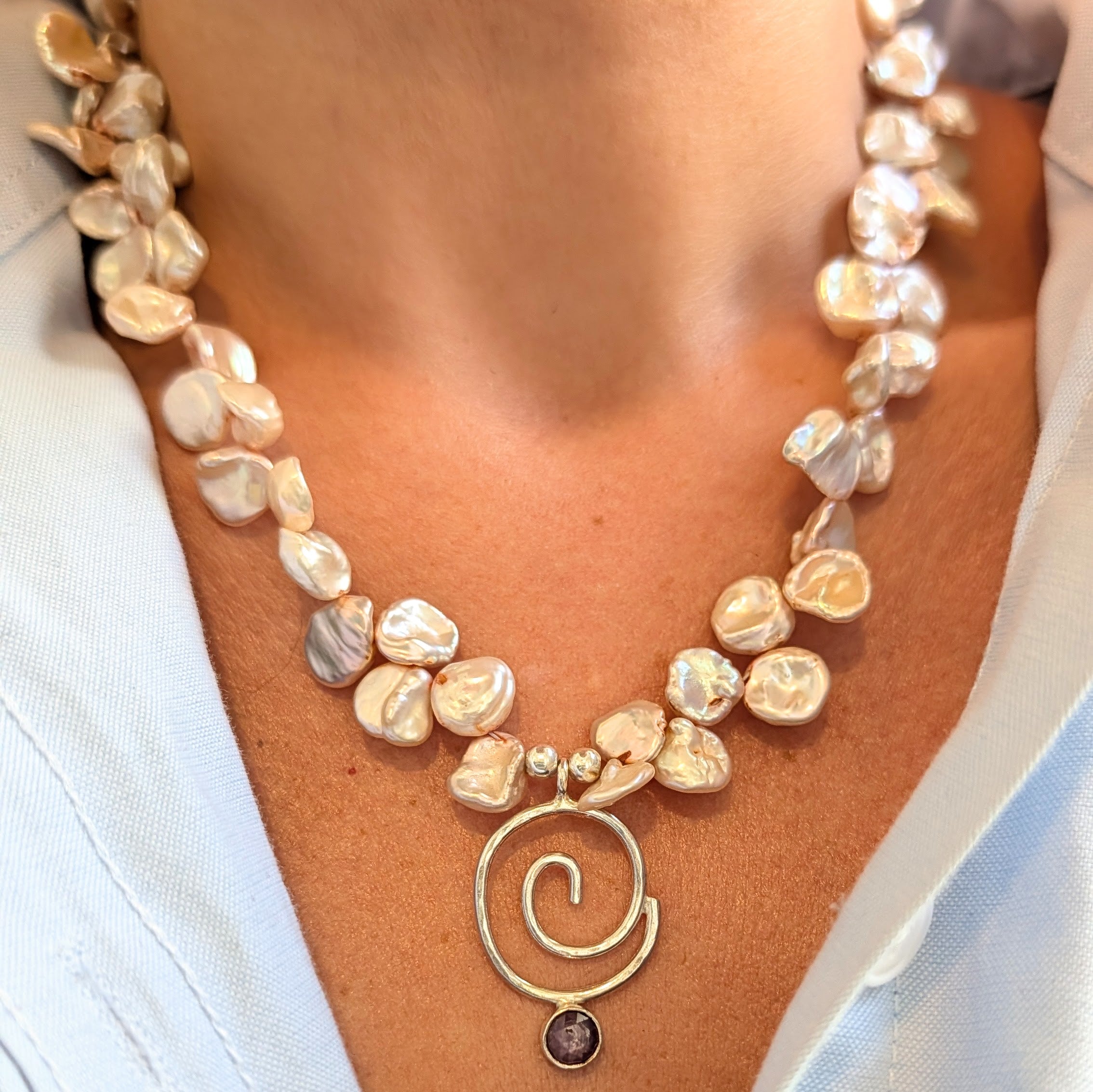 Make a statement with the Saltwater Swirl—a chunky, unapologetically bold pendant that channels pure Y2K surfer energy. Oversized funky pearls spiral around a glowing pink sapphire, creating an organic yet geometric design that's impossible to ignore. This is jewelry for those who refuse to blend in. Layer it, wear it solo, or let it be the focal point of your look. Totally unique, totally you.