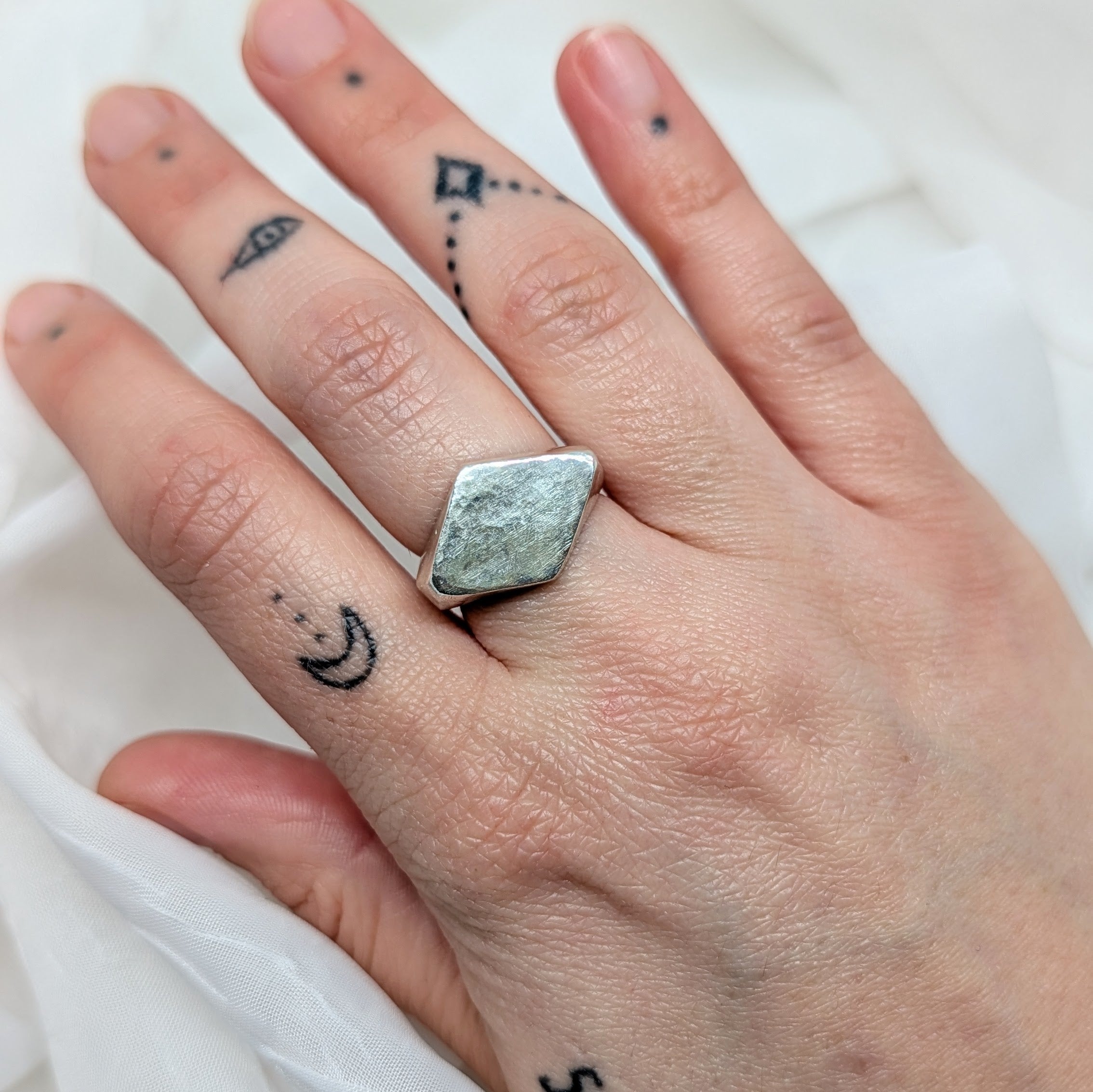 The Obelisk Ring Bold geometry meets everyday luxury. This sterling silver statement ring commands attention with its chunky, substantial weight—the kind of piece that feels as good as it looks. Clean lines and a minimalist design let the metal do the talking, making it the perfect accessory for anyone who believes less is more, but bigger is better. Layer it, stack it, or wear it solo. Either way, it's impossible to ignore.